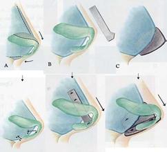 朝天鼻问题治疗的方法主要是要延长鼻中隔软骨的长度,手术时采取开放式切口,将鼻中隔软骨及鼻翼软骨分离出來,同时取出鼻中隔下方软骨或耳朵软骨作材料来延长鼻中隔软骨。一些辅助手术,例如鼻背增高手术、鼻尖软骨移植手术,也可以使鼻子长度增加,減小朝天鼻的程度。