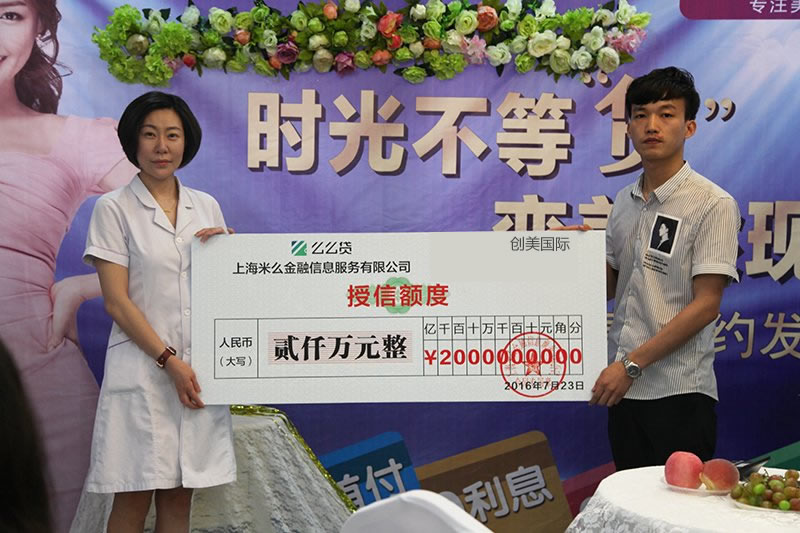 发布会上我院经营主任曹女士接受么么贷2000万整形分期付款额度授信,双方就医疗美容分期支付业务达成长期合作。